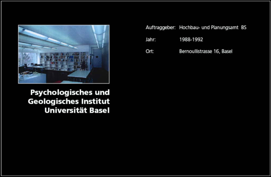 1988 – 1992 Psych. und Geolog. Inst. Uni Basel, Bernoullistrasse, Basel